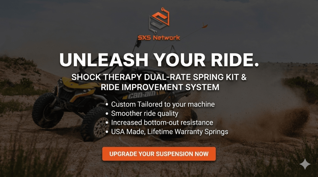 Is your factory suspension holding you back? Experience the industry-leading Shock Therapy Dual-Rate Spring Kit and Ride Improvement System (RIS)—now available at SxS Network. This isn’t a “one size fits all” fix. Every kit is custom-tailored to your machine’s weight, your specific terrain, and your personal driving style.