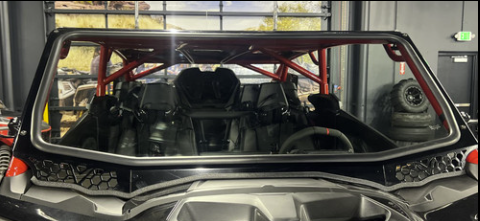 Moto Armor VOODOO MAVERICK R FULL GLASS WINDSHIELDThe VOODOO Maverick R Cage just became better with a full Moto Armor Windshield. Our windshield gives you max visibility with open vents for excellent airflow. It's a perfect match! Features: Automotive Laminated Safety Glass with DOT Stamp Frame is made out of .125" Aluminum Black Powder-coat finish 3D CAD Designed/CNC Cut and Formed Billet Aluminum Mounting Clamps Black Stainless Steel Bolts and Washers Designed & Made in the USA Fitment:2024+ Maverick R with VOODOO RIDERS Cage (refer to voodoo to make sure windshield will fit cage) Glass Windshields: Glass is very scratch resistant but not scratch proof! While very hard and durable, glass can still be scratched if contaminants such as sand, small rocks, dirt etc. being rubbed on glass. Towels, windshield wipers, and squeegees can scratch glass if there are contaminants on the windshield. Any damage that is caused by interference from other aftermarket products will not be subject to any warranty claim. At time of purchase, buyer agrees to all policies, procedures, and returns processes. Windshields may not fit with aftermarket products such as: Roofs Stereos Mirrors with thick clamps Cab enclosures *Please note there is a 10% restocking fee for cancelled orders from distributers*