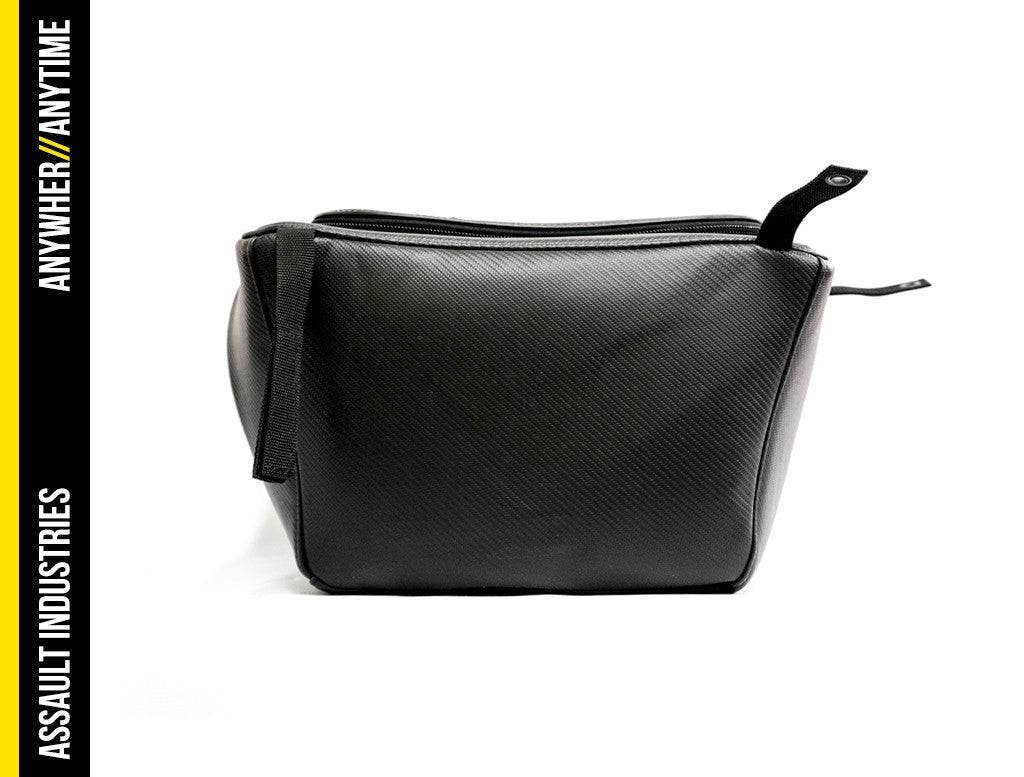 The storage bag is made from durable, easy to clean materials and is available in black with a charcoal Assault Industries logo on the front.