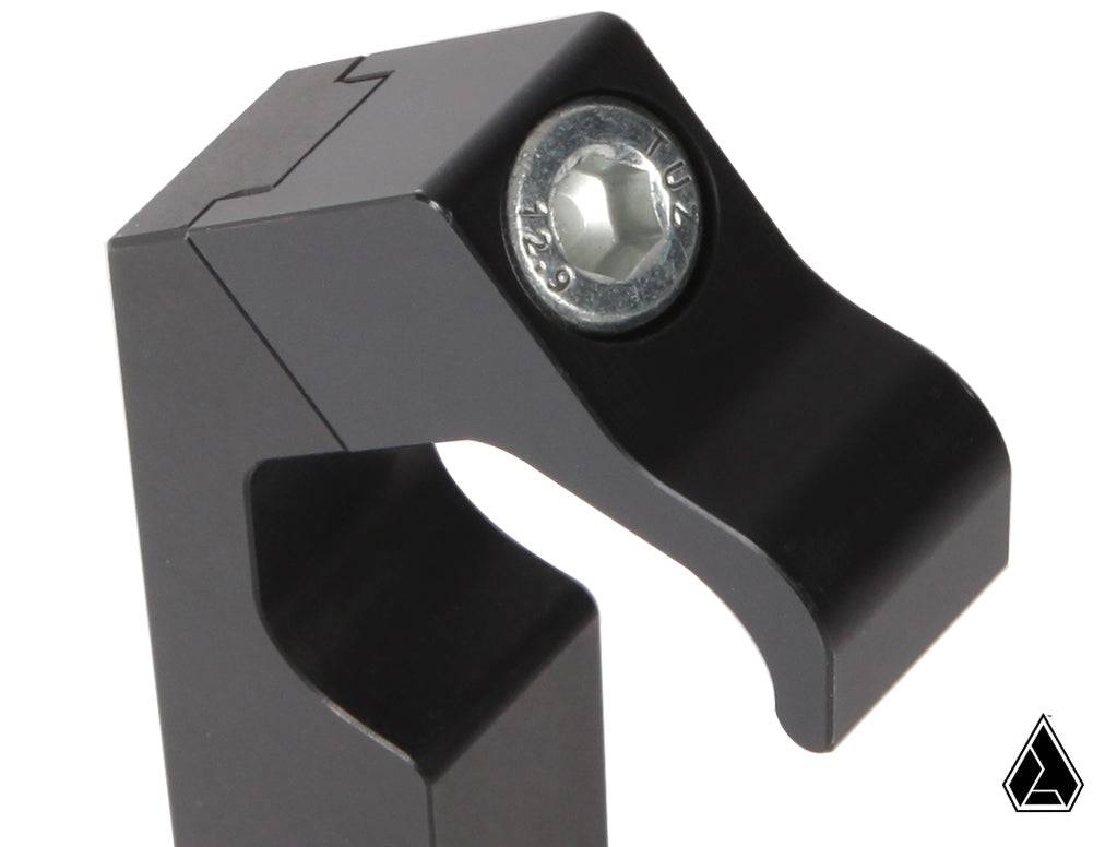 The Assault Industries cage gripper clamps for Polaris, Can Am pro-fit cages offer an extraordinarily strong mounting solution for popular accessories like side mirrors. The thread hole size is M10 which is compatible with all Assault Industries mirrors. The clamps install easily using a hex (Allen) key and, once fastened into place, provide an incredibly strong hold on the cage. The main body of the clamps are constructed from CNC machined billet aluminum, hard anodized black. Installation is a snap! Just remove the screw, pull the 2 piece mount apart and slide it back together on the cage. Reinstall screw, tighten and install the accessory item of choice! Note: Will not work with the cab enclosure without modification.Fits: Polaris General // RangerCan Am Commander // DefenderPackage Contents(1) Clamp (1) Hex Screw