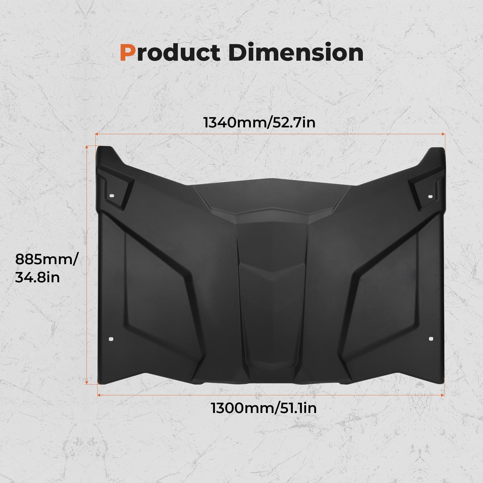 We use polypropylene to make this Can-Am Maverick X3 roof, the same quality as OEM, soft but strong and durable – it’s great for year-round use. This material is light, but it is strong enough to resist branches, boulders, and tumbling without adding too much weight.