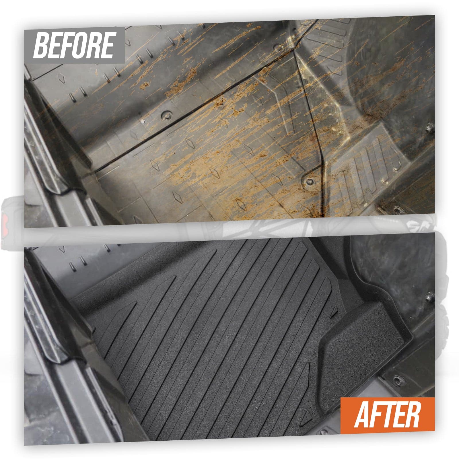 Defender all-weather protection floor mats are designed to against spills, rain, snow, mud, or other debris flowing into the carpet inside, which is a must-have UTV floor mat to protect your SxS from all of the mess.