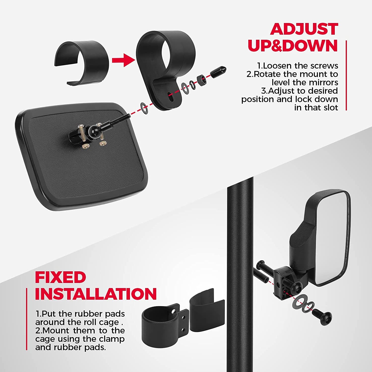 KEMIMOTO UTV Mirrors for 1.6″-2″ Roll Bar